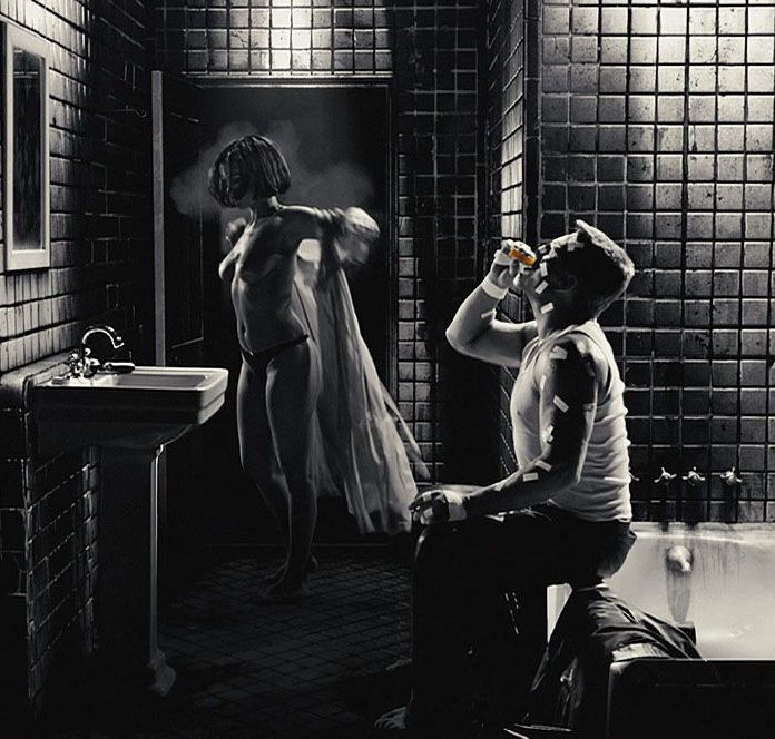 Карла Гуджино снялась в фильмах «Девушка входит в бар» и «Город грехов», где представлены ее образы. В этих работах акцентируется внимание на ее внешности.
