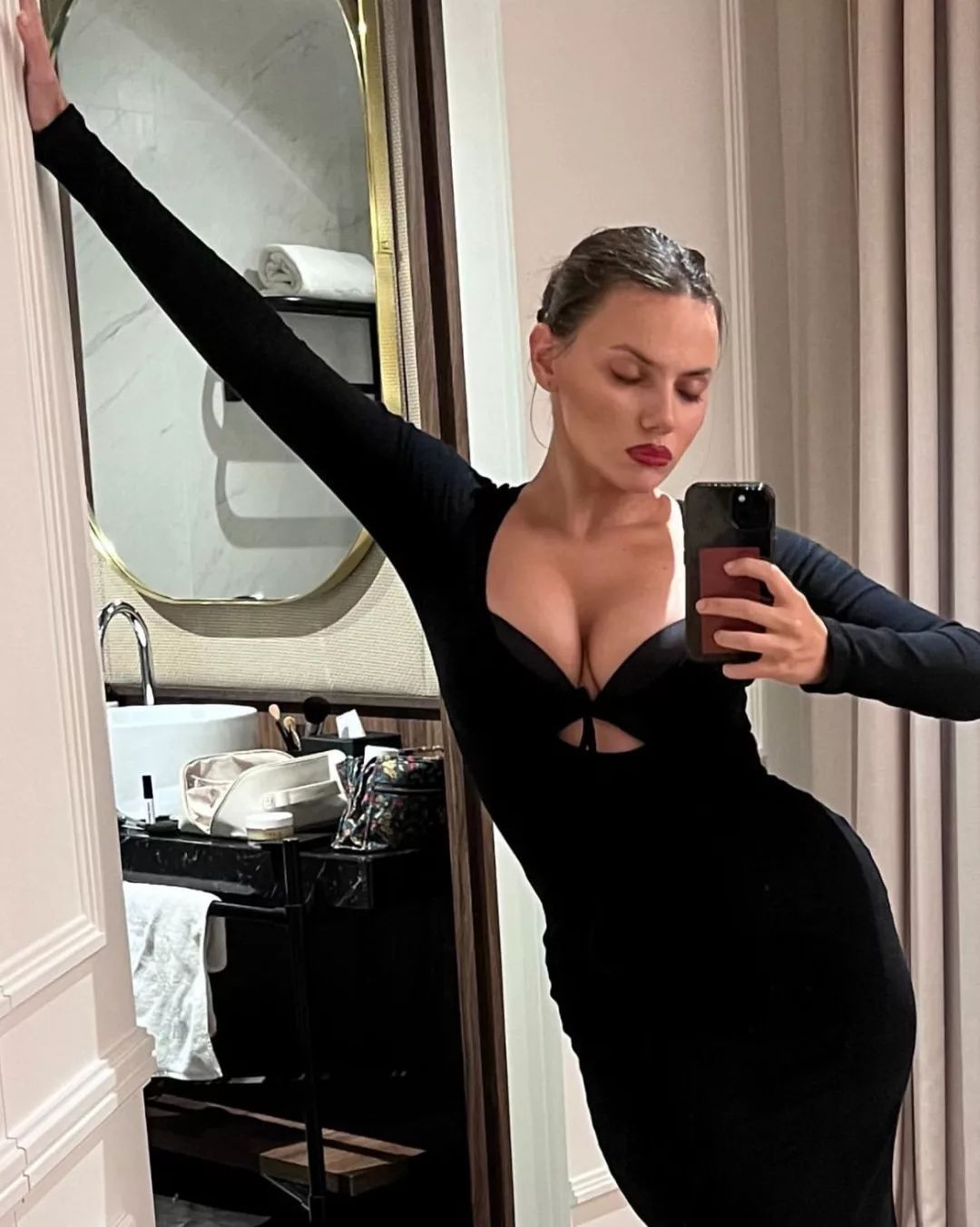 На своих снимках актриса демонстрирует нижнее белье, купальники и наряды с глубоким декольте. Она предпочитает выходить на мероприятия в платьях без нижнего белья.