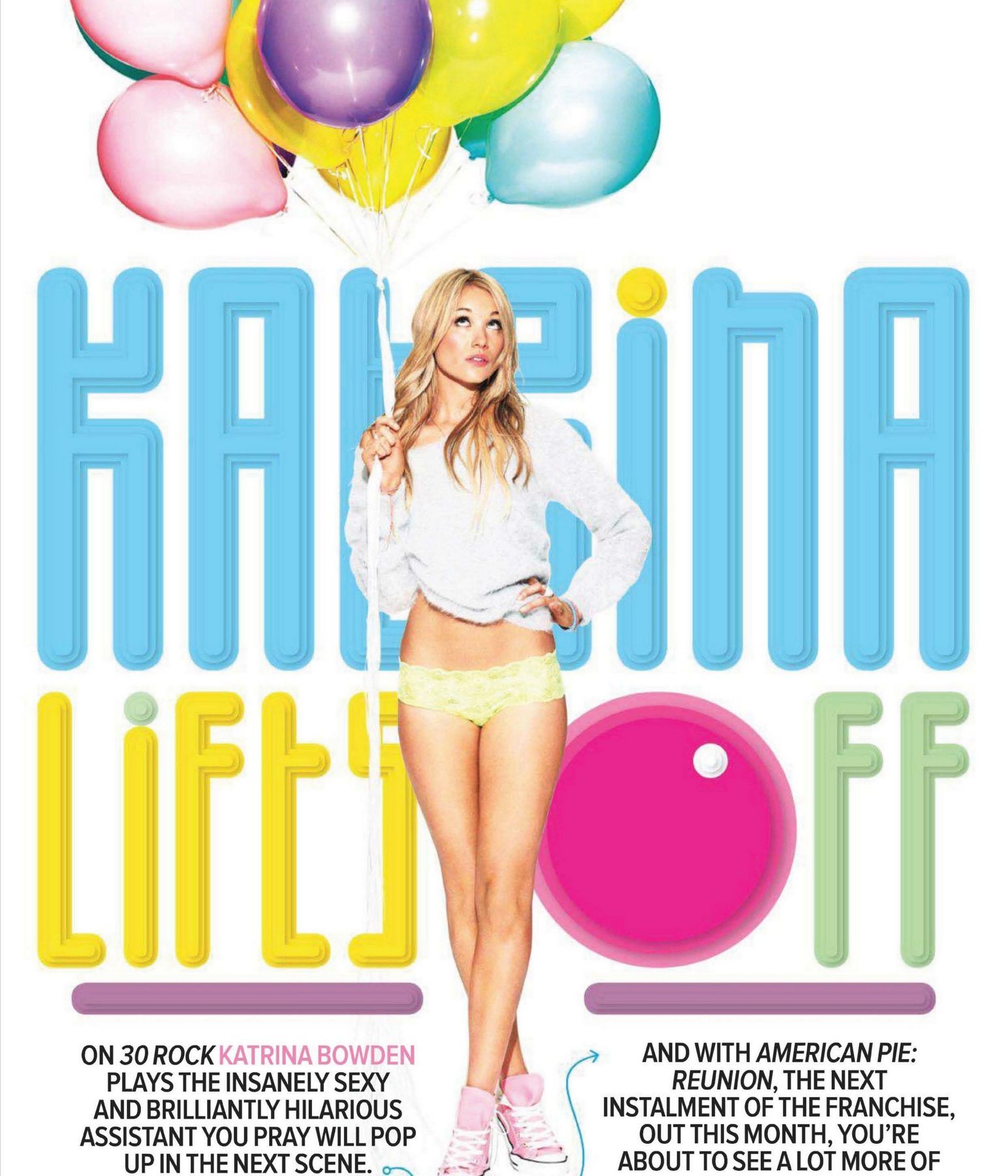 Американская актриса Катрина Боуден известна по ролям в фильмах «Убойные каникулы» и «Американский пирог: Все в сборе». Она часто демонстрирует свою фигуру, участвуя в фотосессиях для мужских журналов, таких как Maxim и FHM.