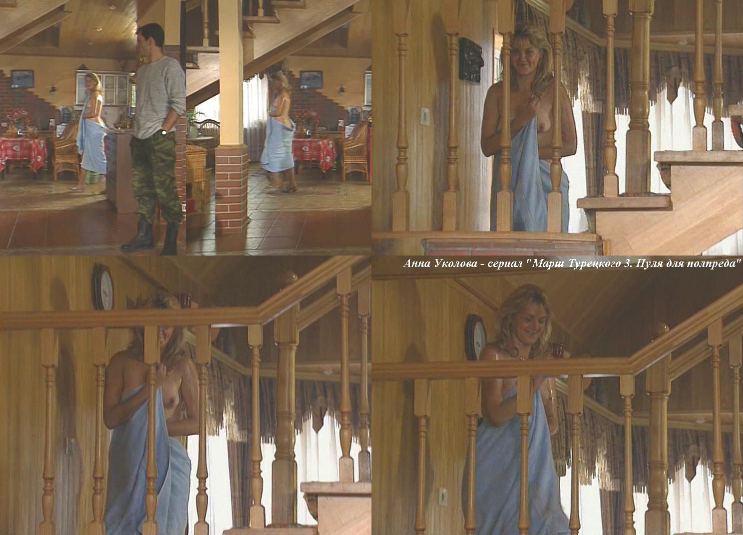 Анна Уколова в ходе своей актерской карьеры неоднократно снималась обнаженной, участвуя в фильмах «Точка», «Край», «Миннесота» и «Закон». В этих картинах представлены эротические сцены с ее участием.