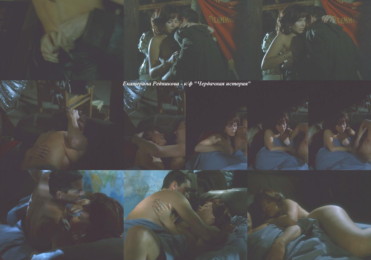 Екатерина Редникова снималась в фильмах, где демонстрировала обнаженное тело, включая фильмы «Виза на смерть», «Дом», «Вор» и «Чердачная история». В этих картинах она выставляла напоказ не только грудь и ягодицы, но также интимные части тела.