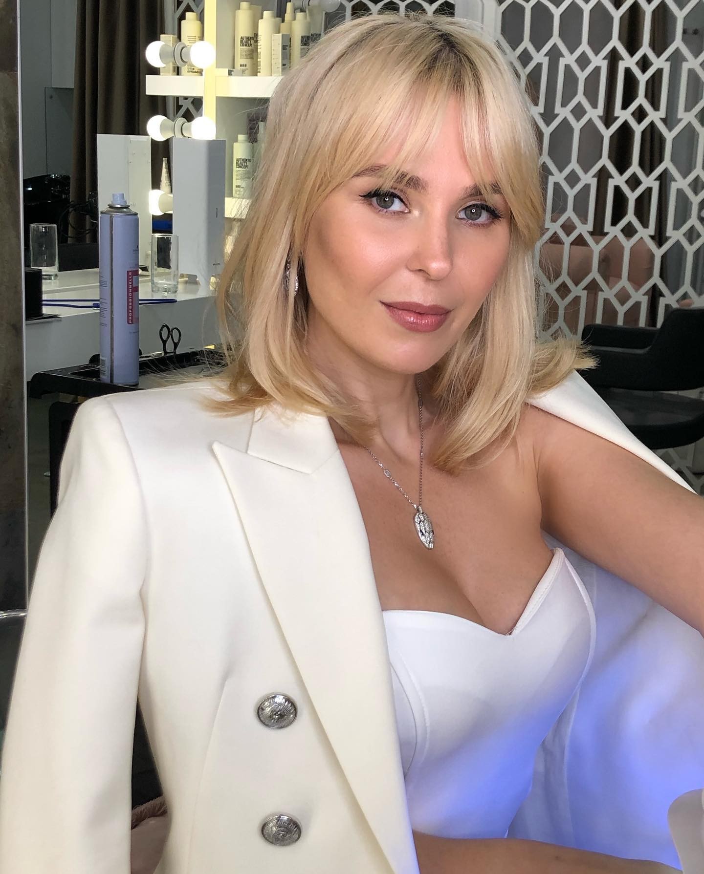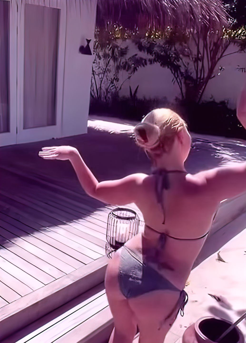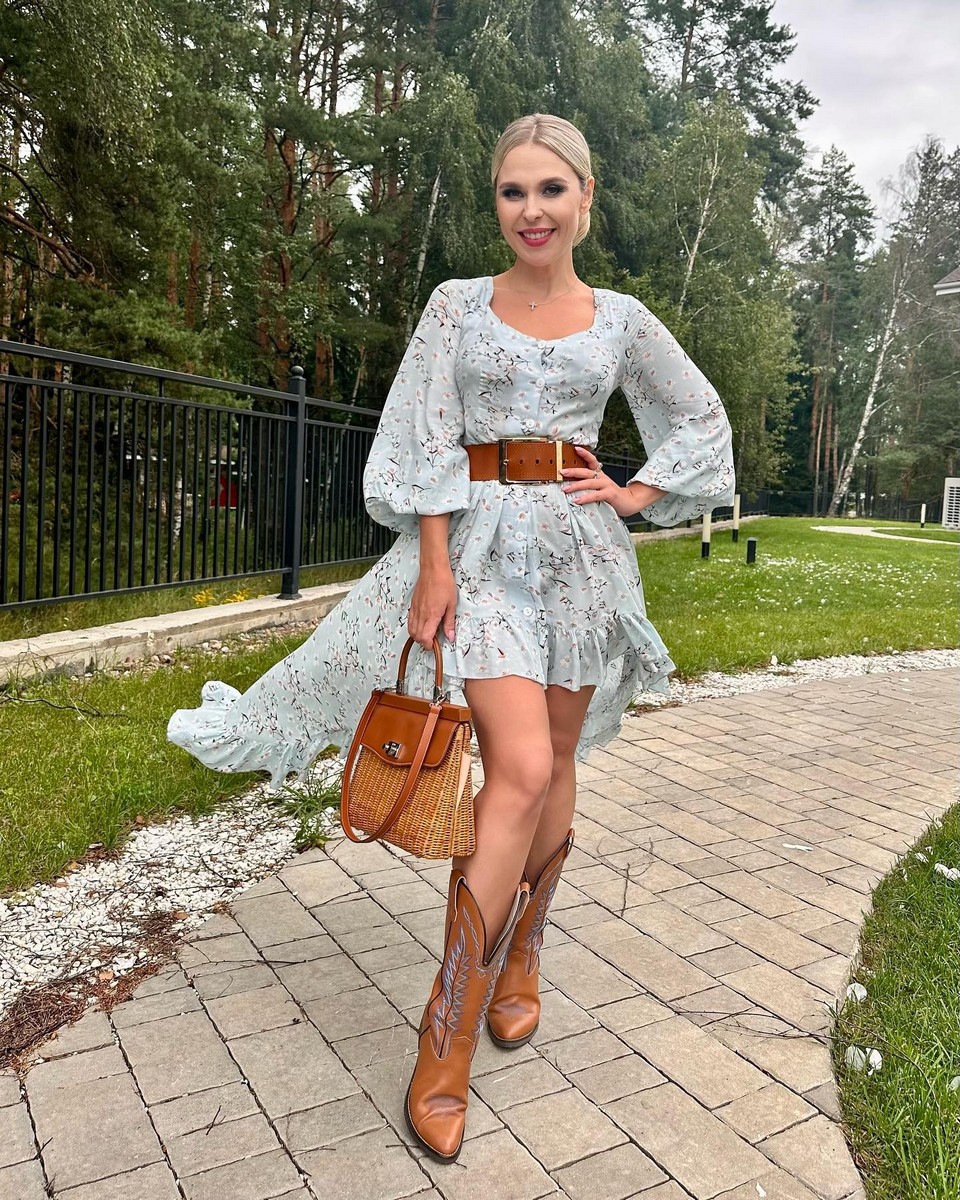 На изображениях акцентируется внимание на ее фигуре, включая небольшую грудь и бедра.
